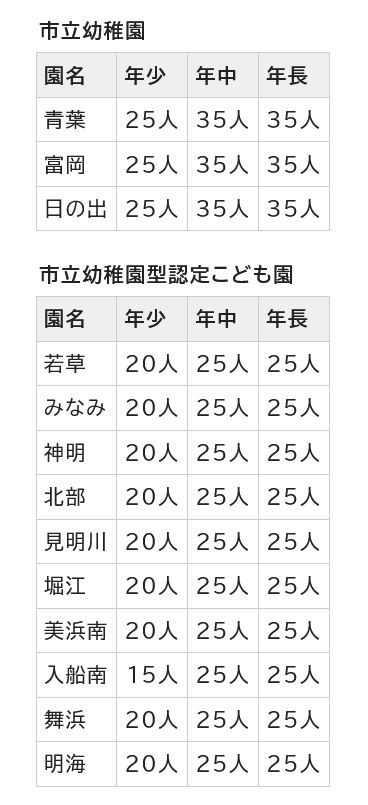 | 問い合わせ先 | 保育幼稚園課 Tel:047-712-6439 |