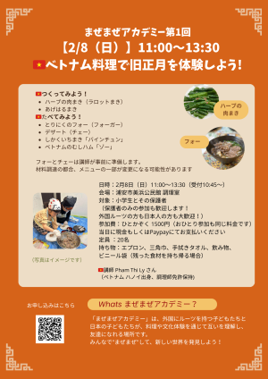 公開日:2026年01月23日【要申込】まぜまぜアカデミー第1回「ベトナム料理で旧正月を体験しよう!」開催日:2026年02月08日(日)