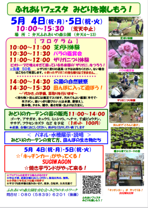 公開日:2026年04月20日ふれあいフェスタ みどりを楽しもう!開催日:2026年05月04日(月)~05月05日(火)