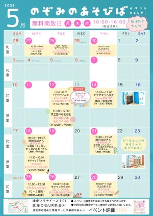 公開日:2026年04月27日のぞみのあそびば無料開放日(祝日を除く)(浦安マリナイースト21望海の街)開催日:毎週月曜日・火曜日・木曜日