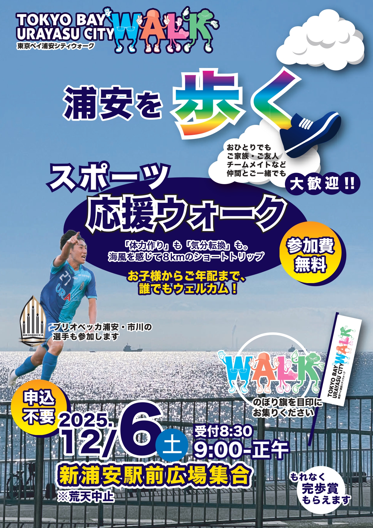 ブリオベッカ浦安の選手が皆さんと一緒に参加します。日ごろ触れ合う機会がない選手たちと楽しい会話をしながら歩きます。