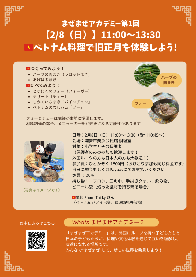 【要申込】まぜまぜアカデミー第1回「ベトナム料理で旧正月を体験しよう!」親子で一緒にベトナム料理を作って食べて、楽しい時間を過ごしませんか。