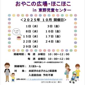 予約不要です!遊びに来てね♪開催日:2025年10月01日(水)、03日(金)、08日(水)、10日(金)、15日(水)、17日(金)、22日(水)、24日(金)、29日(水)
