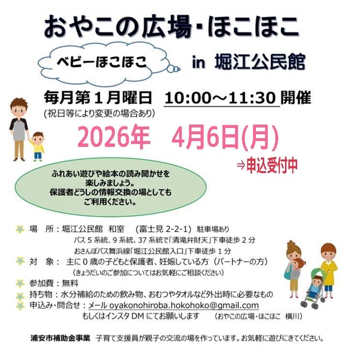 ※予約の際に「ベビーほこほこ堀江希望」と記載して下さい。
