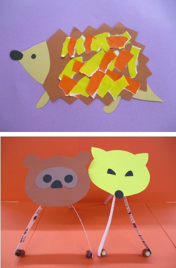 *11月の製作は、水曜日「ハリネズミ」、金曜日「キツネとタヌキのカスタネット」です。