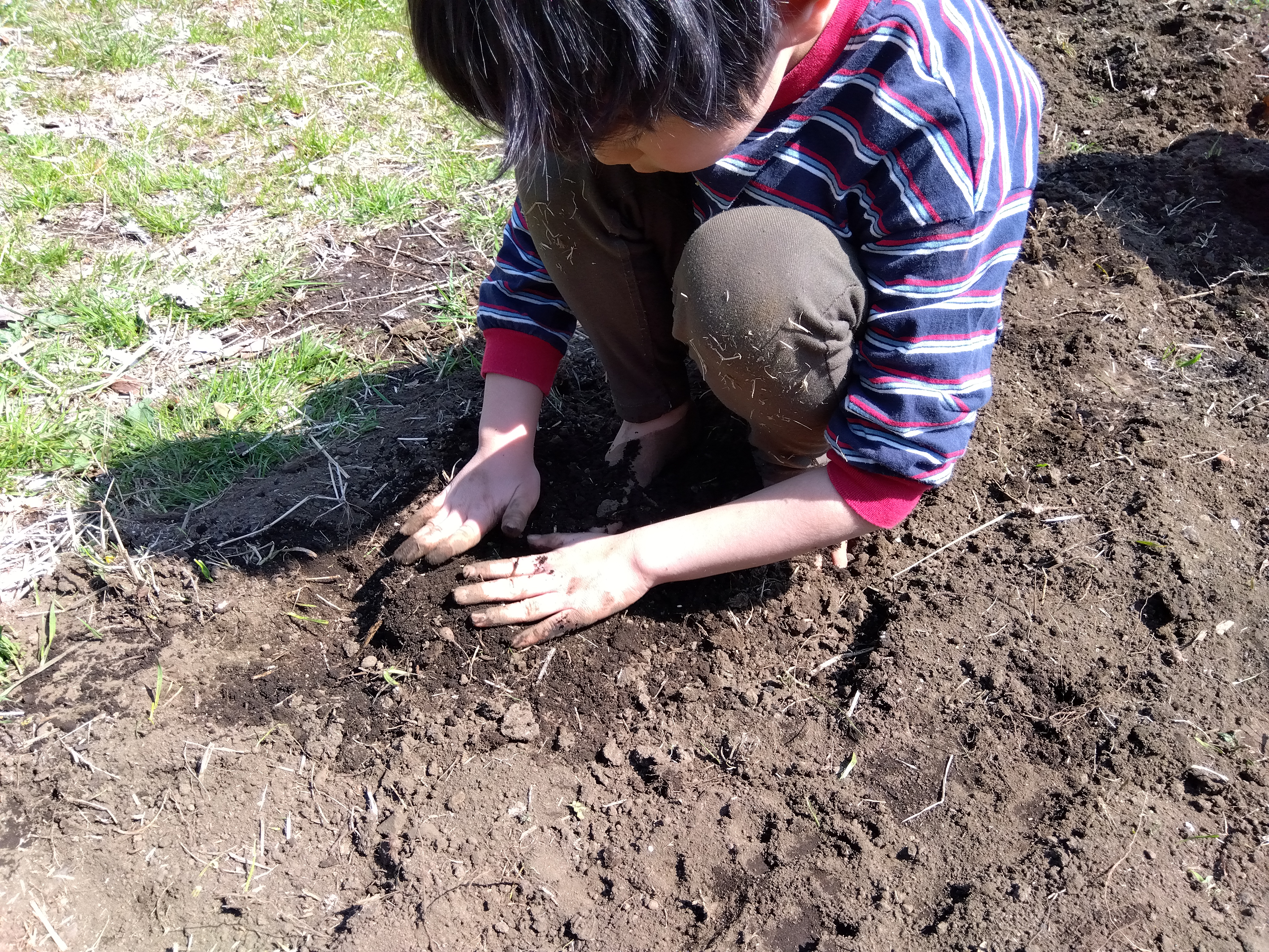 野外チャレンジ・種だんごで花を植えよう